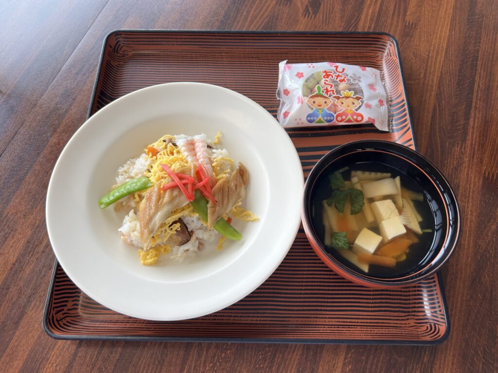 管理栄養士1名と調理師4名、調理補助2名が交代で多い日には90食ぐらいの食事を作るそうです。