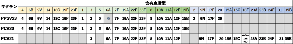 ※ 血清型6Aは23価莢膜ポリサッカライドワクチンには含まれない